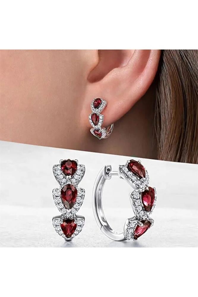أقراط دائرية فاخرة من Huitan E2306 مرصعة بالزركونيا المكعبة باللون الأزرق
