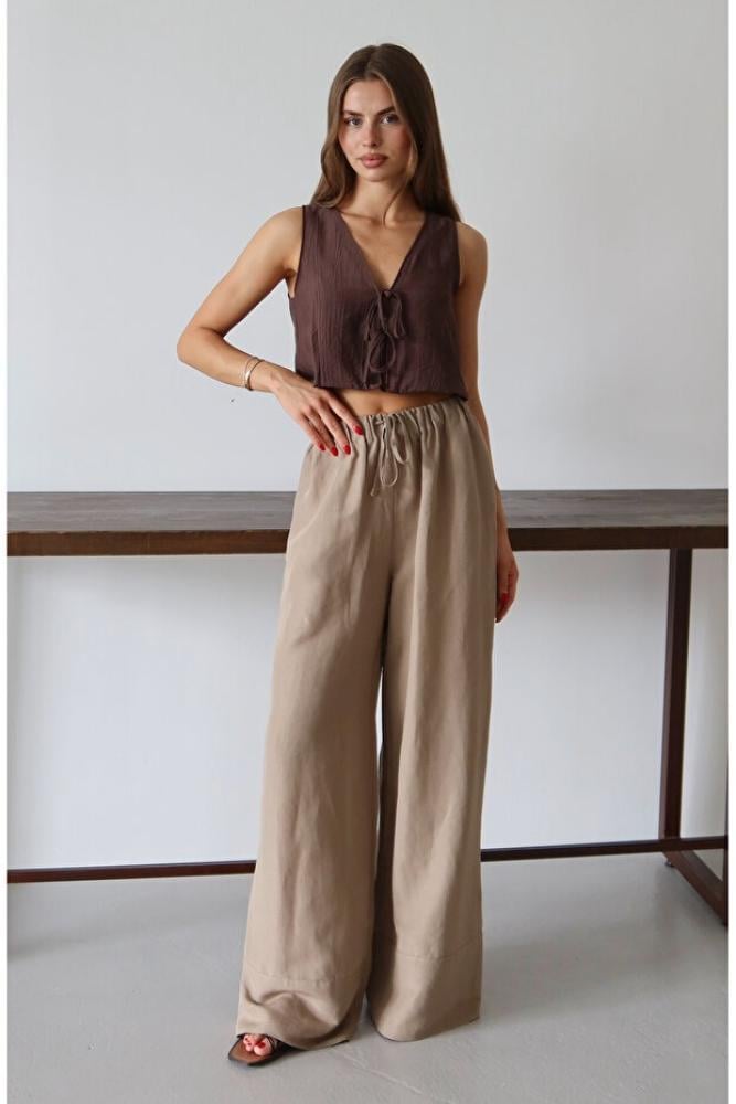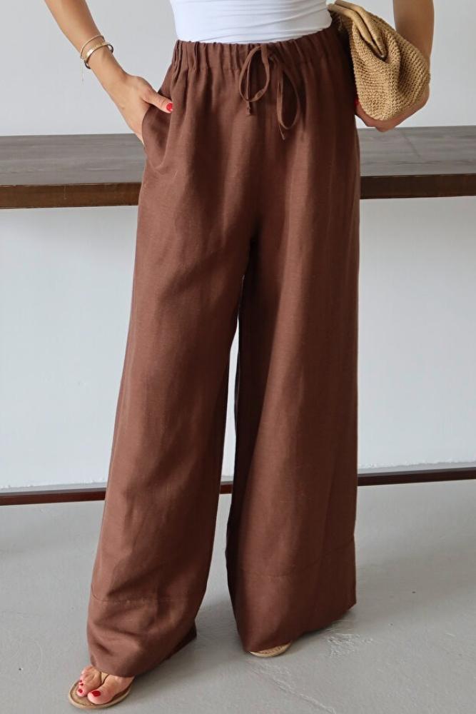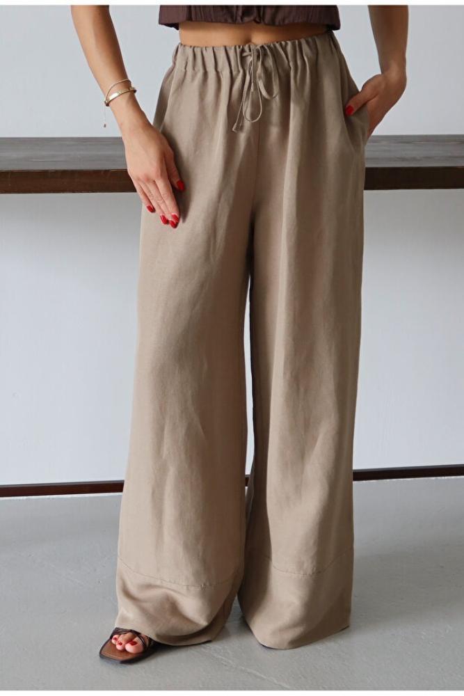 بنطال واسع الساق محتوى الكتان المنك