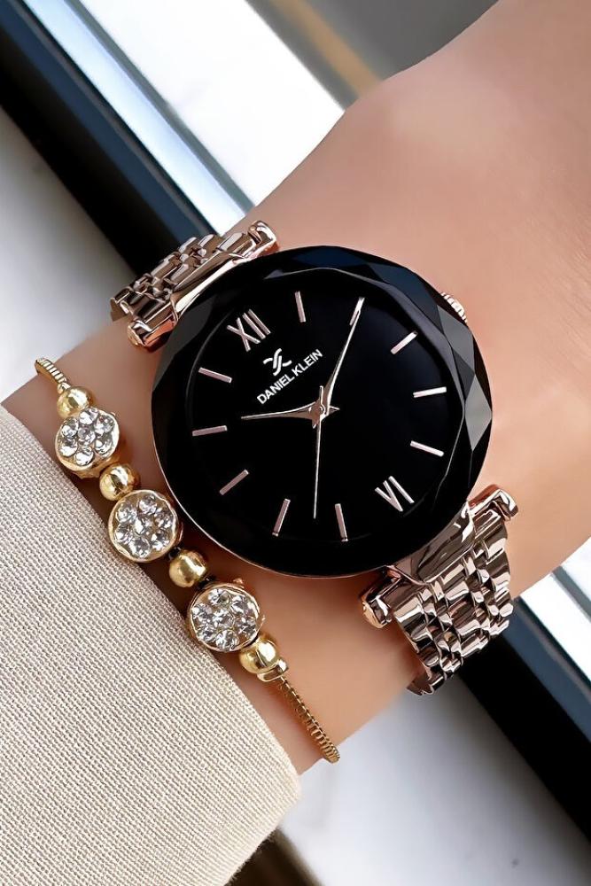 ساعة يد نسائية من الزجاج المقطوع - سوار هدية مع سوار فولاذي