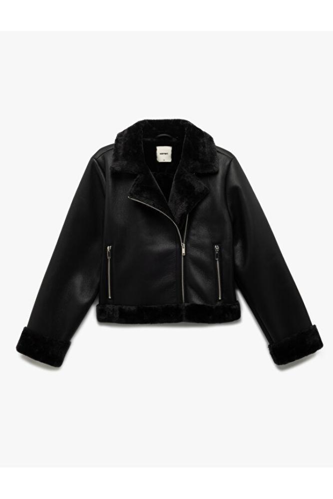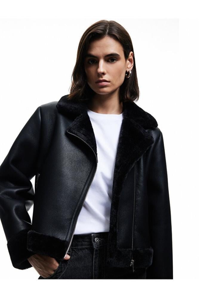 سترة نسائية قصيرة تضيف لمسة عصرية وجريئة لإطلالتك. تتميز بخامة جلد صناعي عالية الجودة مع بطانة من الفرو الصناعي لتوفير الدفء والراحة، مثالية للأيام الباردة مع تصميم قصير وأنيق يناسب جميع المناسبات الكاجوال.