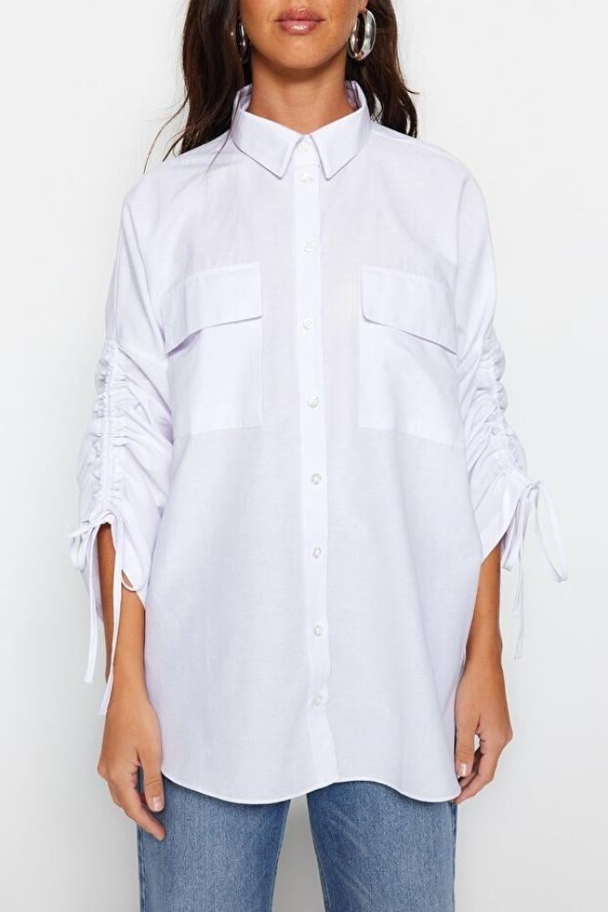 قمي منسوج من القطن بأكمام قابلة للتعديل